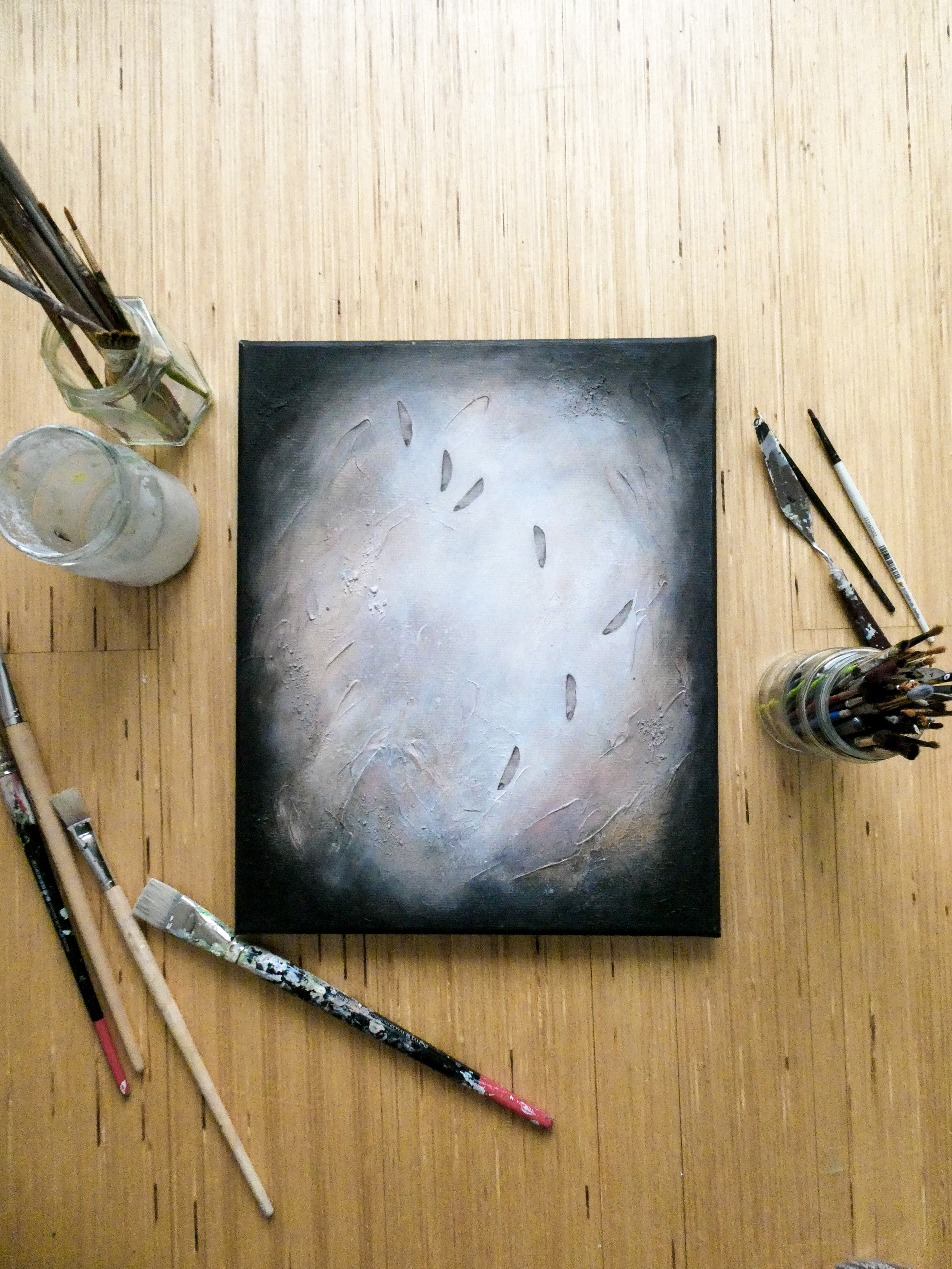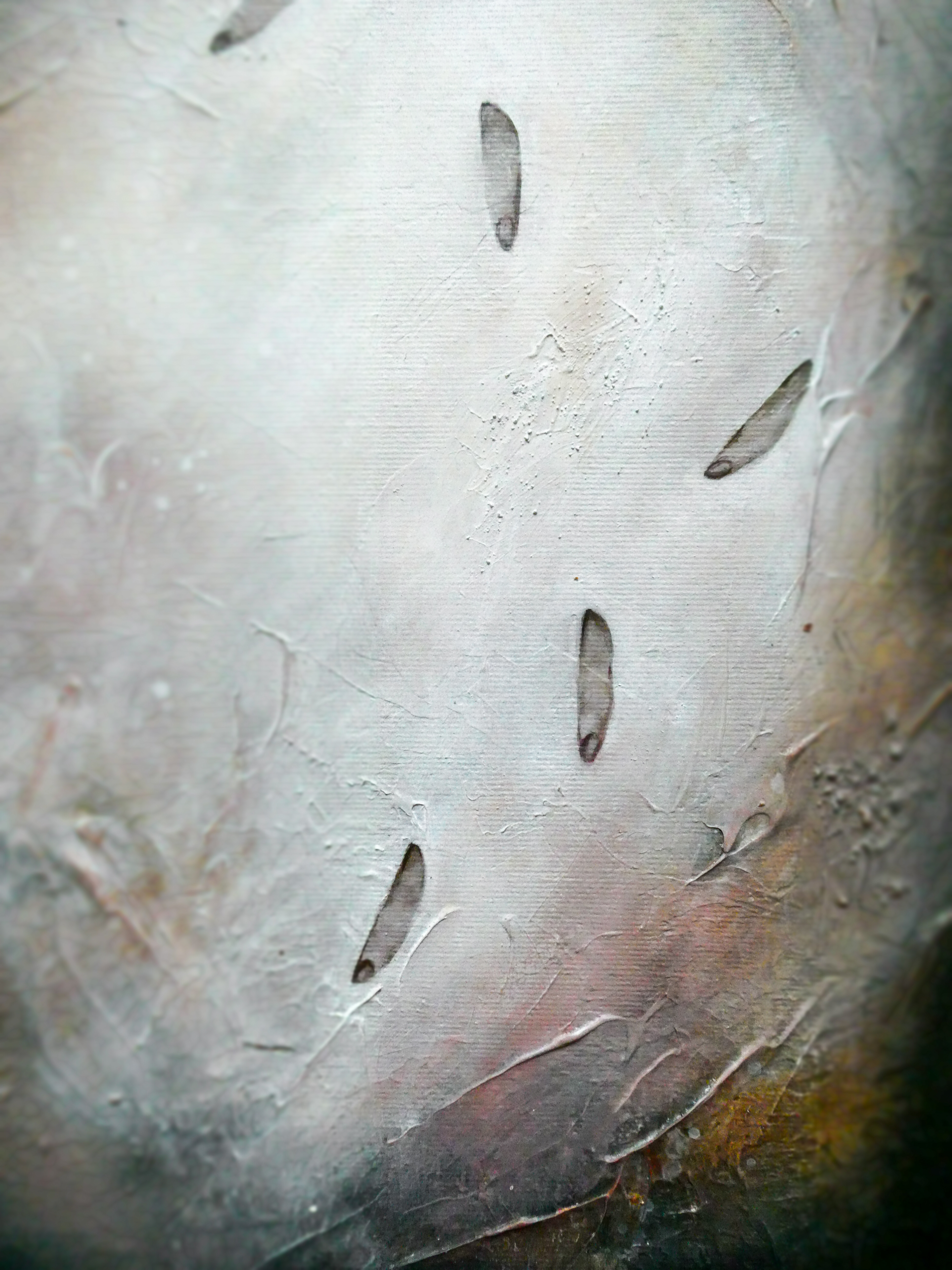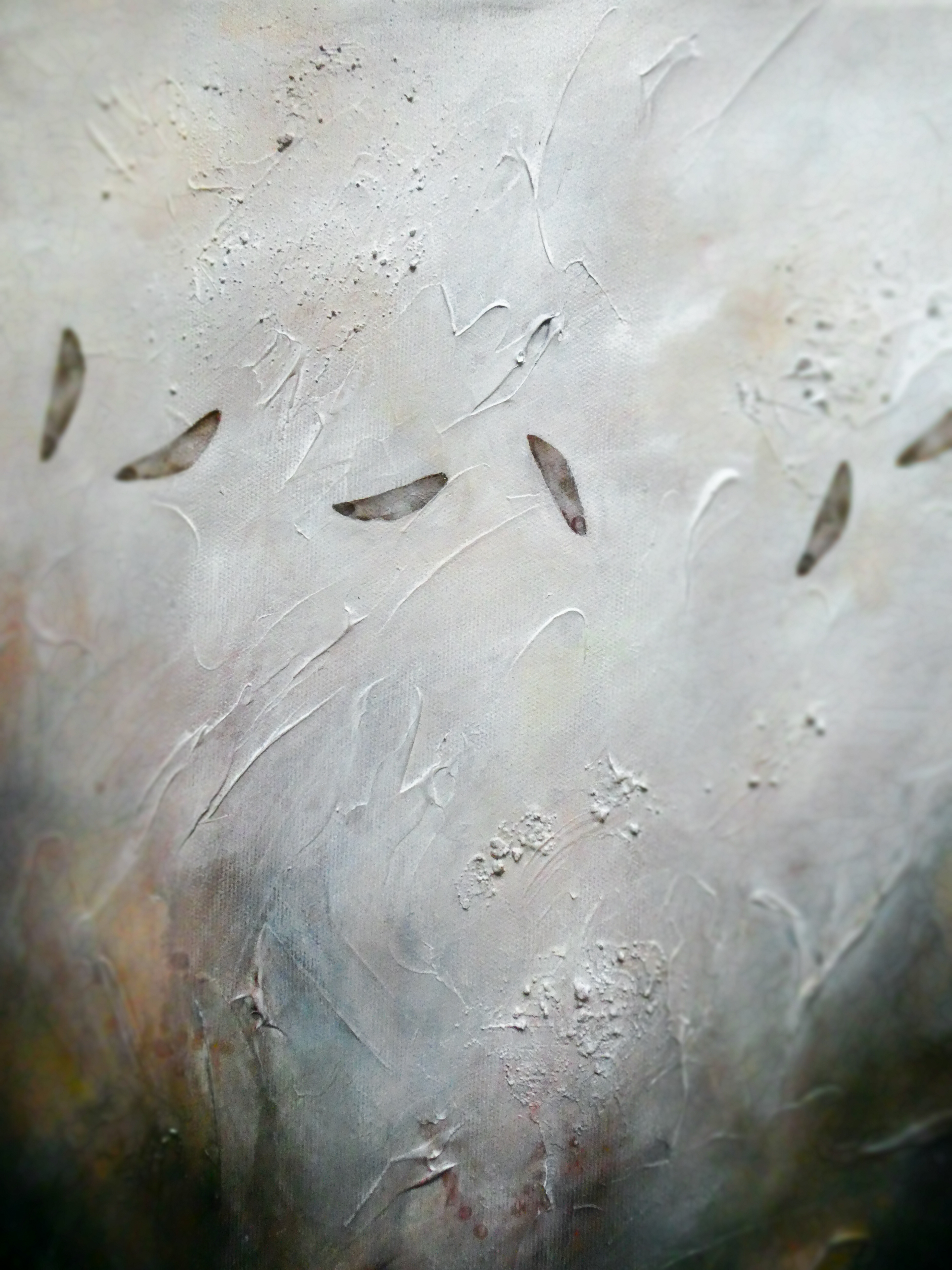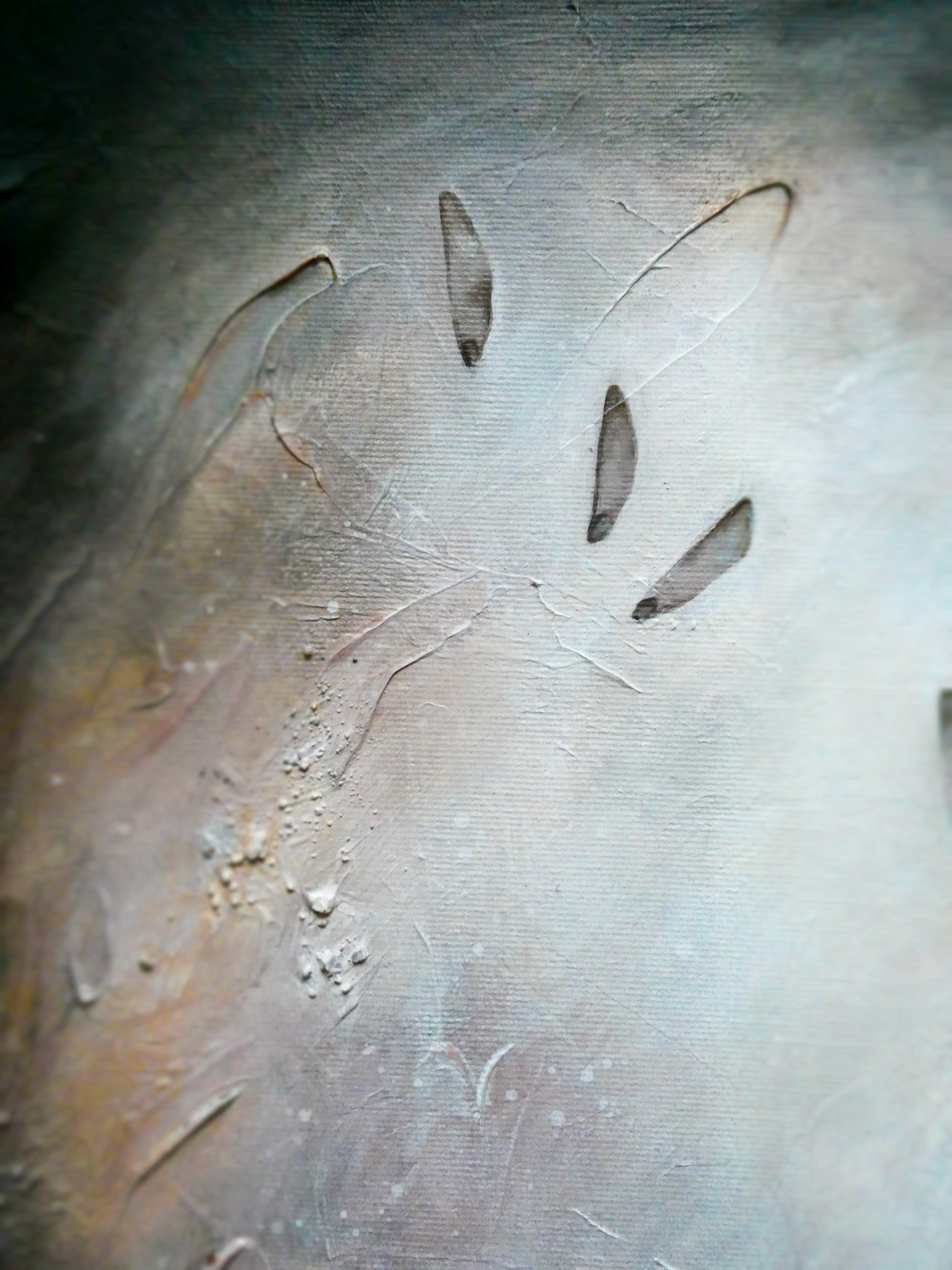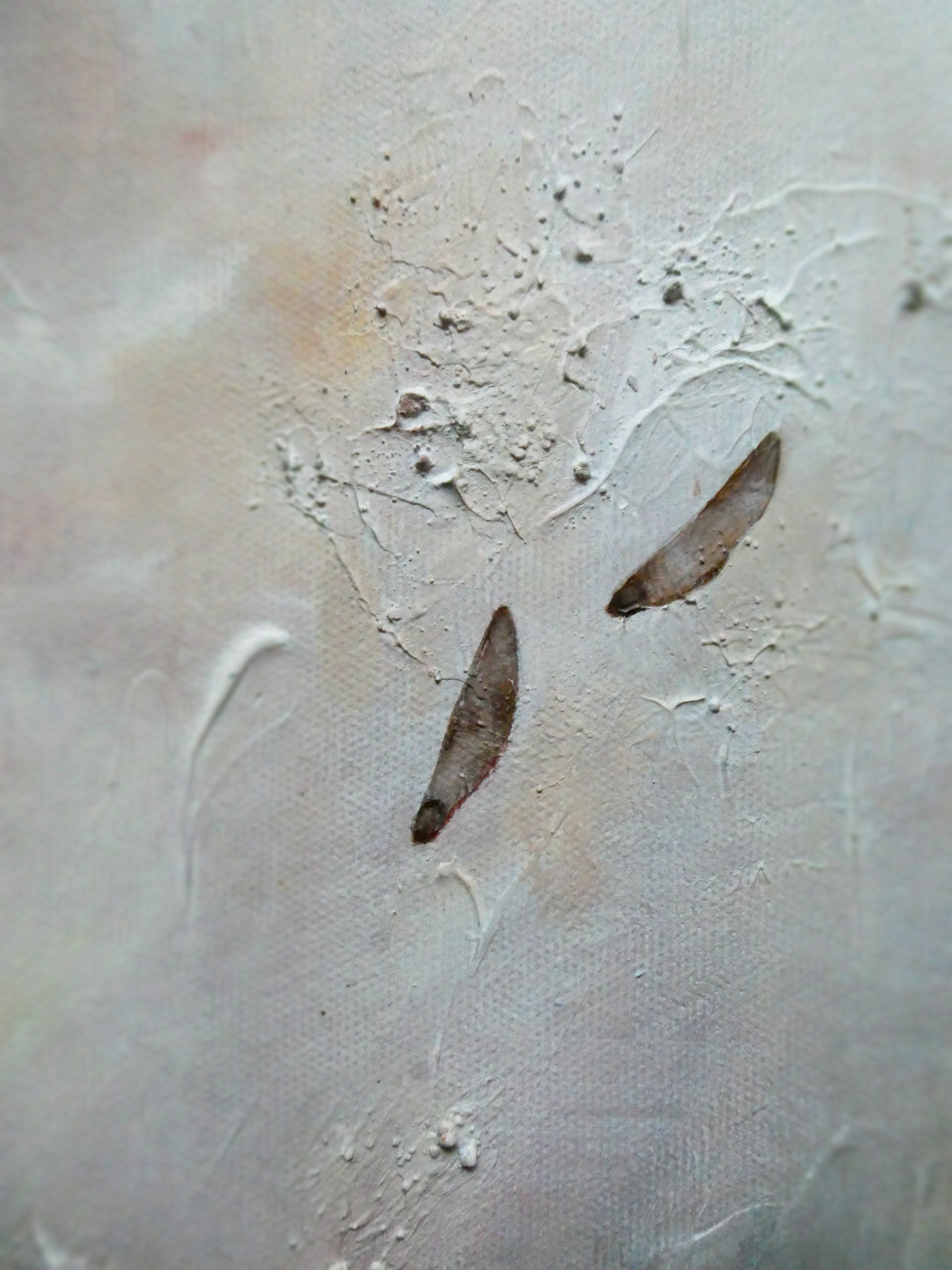 Teos on toteutettu 0,9 cm vahvuiselle vanerille, teoksen takana ripustuskiinnike, joka tuo teoksen kauemmas seinäpinnasta luoden kolmiulotteisen vaikutelman