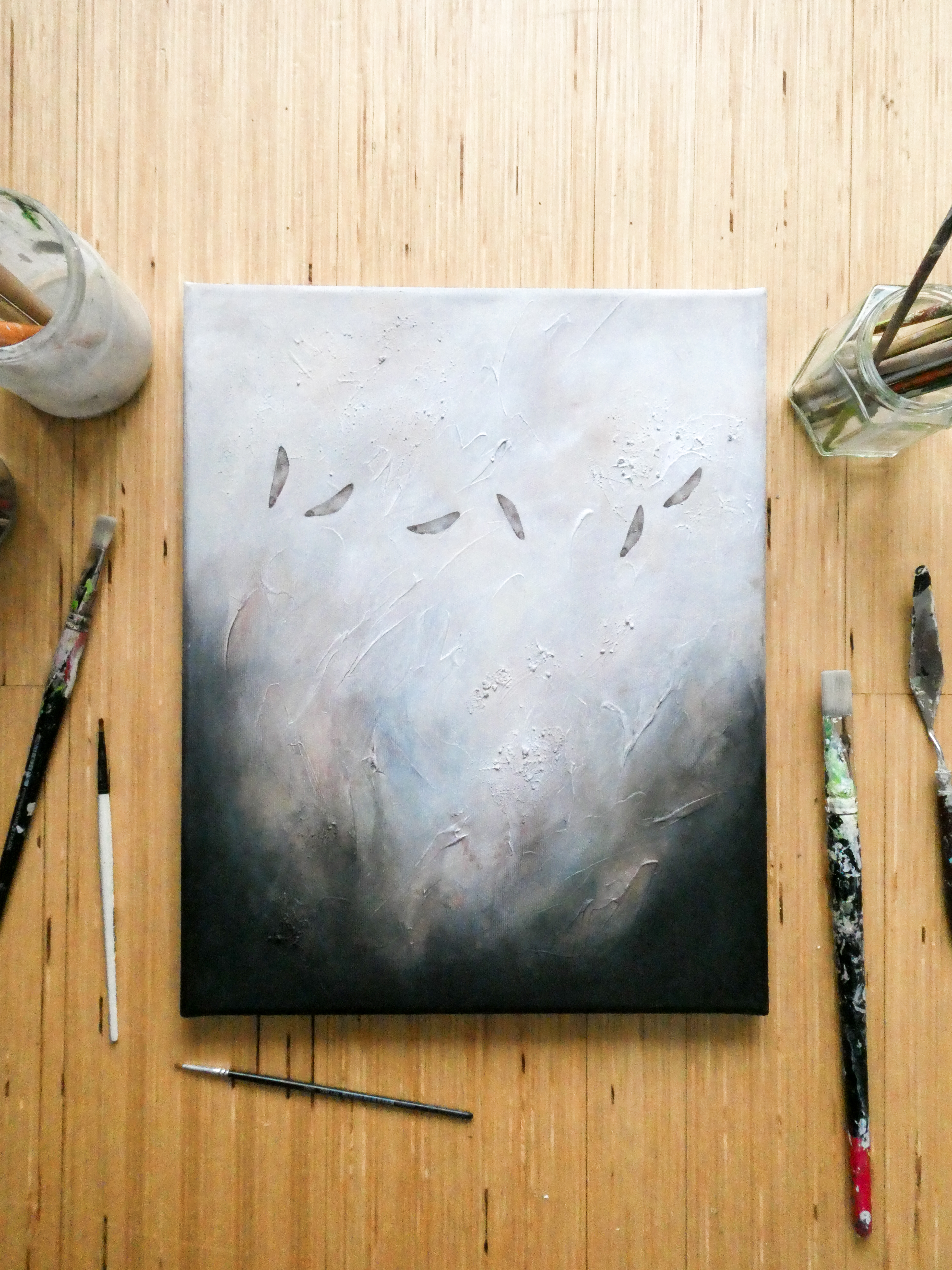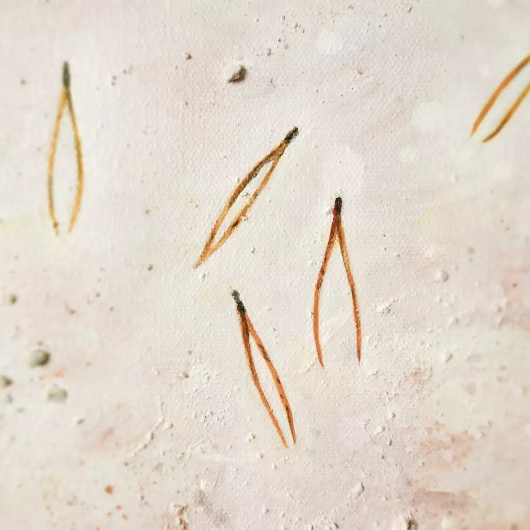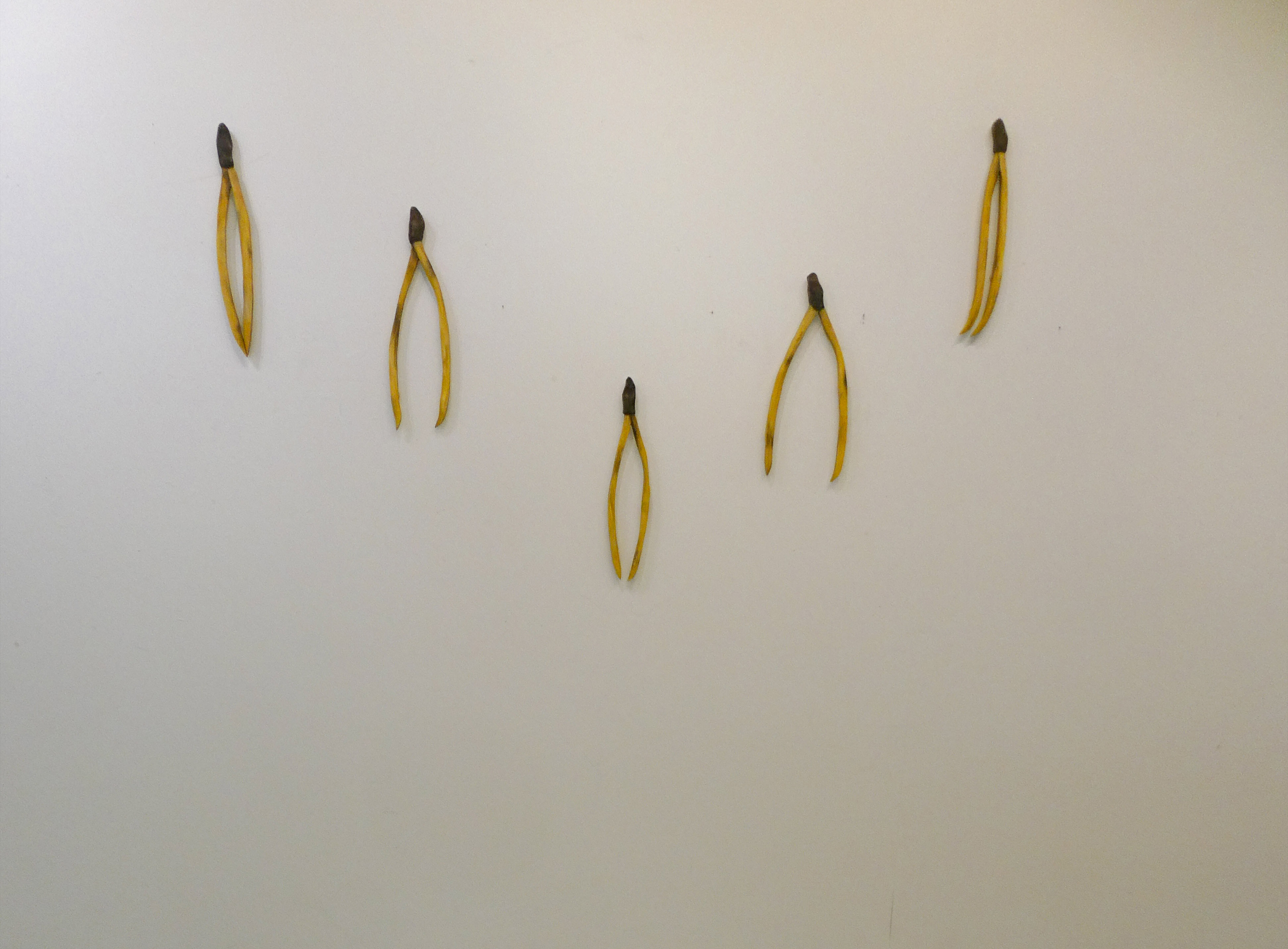 Teokset on toteutettu 0,9 cm vahvuiselle vanerille, jokaisen teoksen takana ripustuskiinnike, joka tuo teoksen kauemmas seinäpinnasta luoden kolmiulotteisen vaikutelman